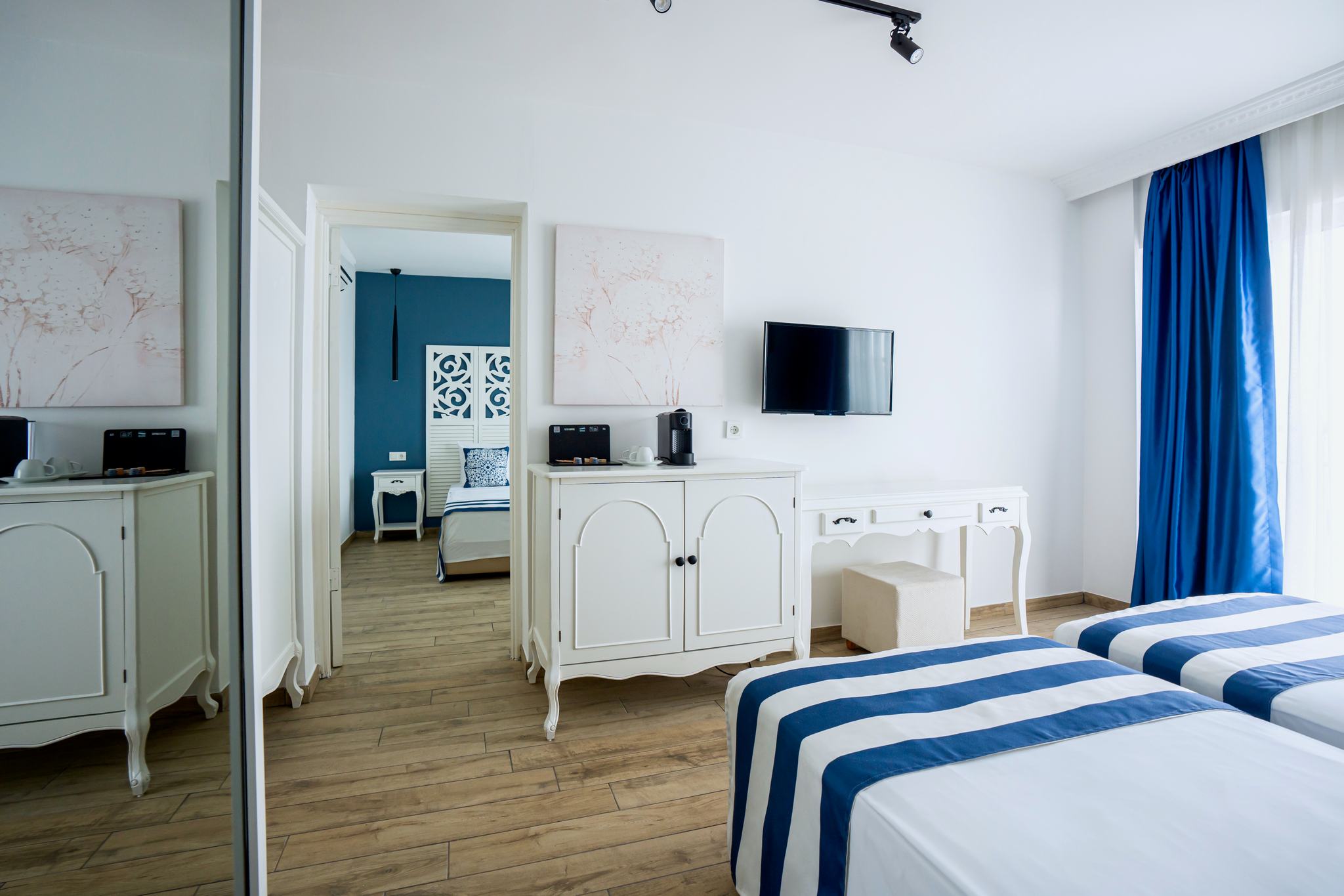 Club Aile Odalarımız, birlikte tatil yapmak isteyen aileler için özel olarak tasarlanmıştır. İki ayrı yatak odası ve geniş oturma alanı ile hem mahremiyet hem de birliktelik imkanı sunan bu odalar, deniz manzaralı balkonları ile Bodrum'un büyüleyici atmosferini odanıza taşır. Çocuklu aileler için ekstra konfor ve güvenlik özellikleri düşünülmüştür.